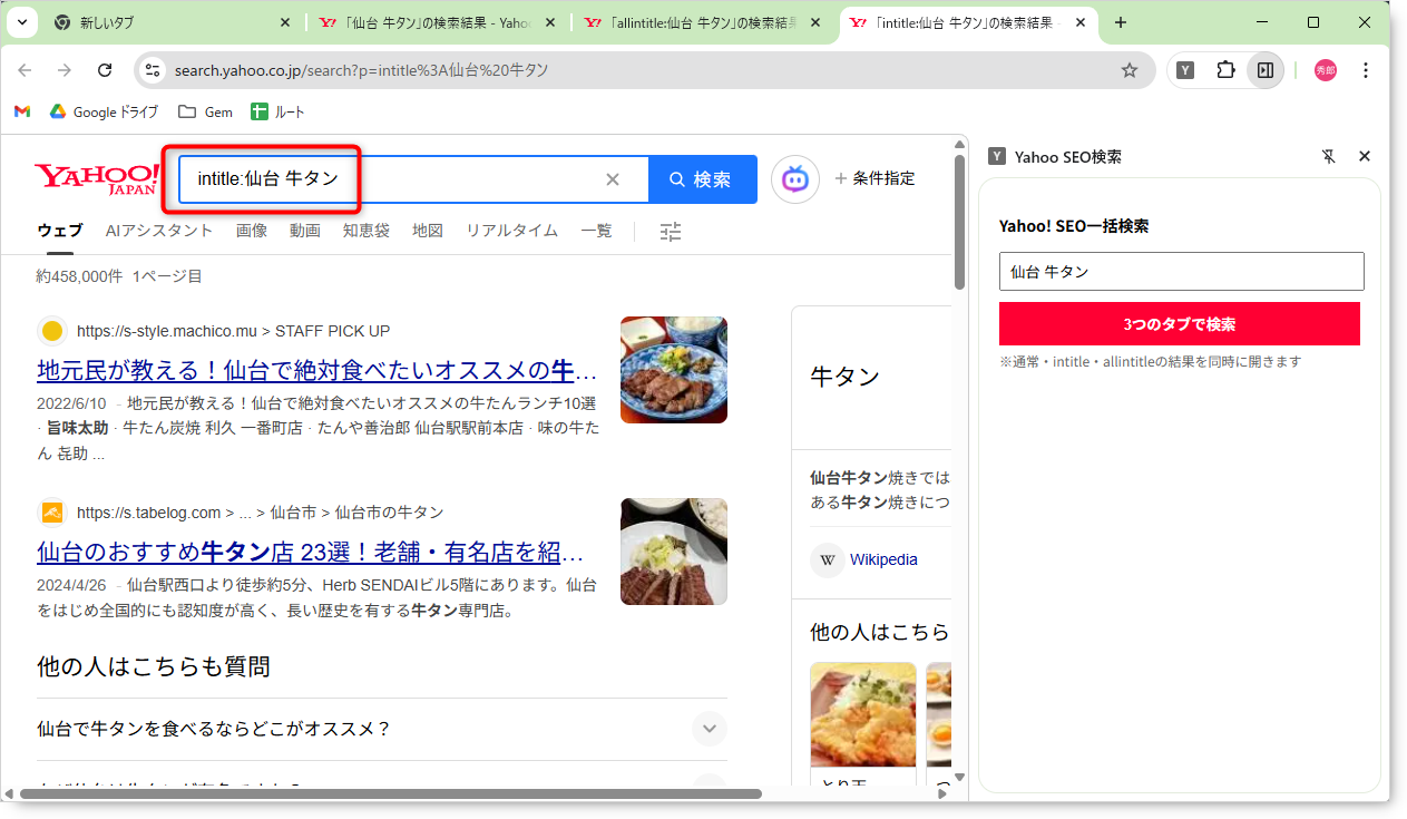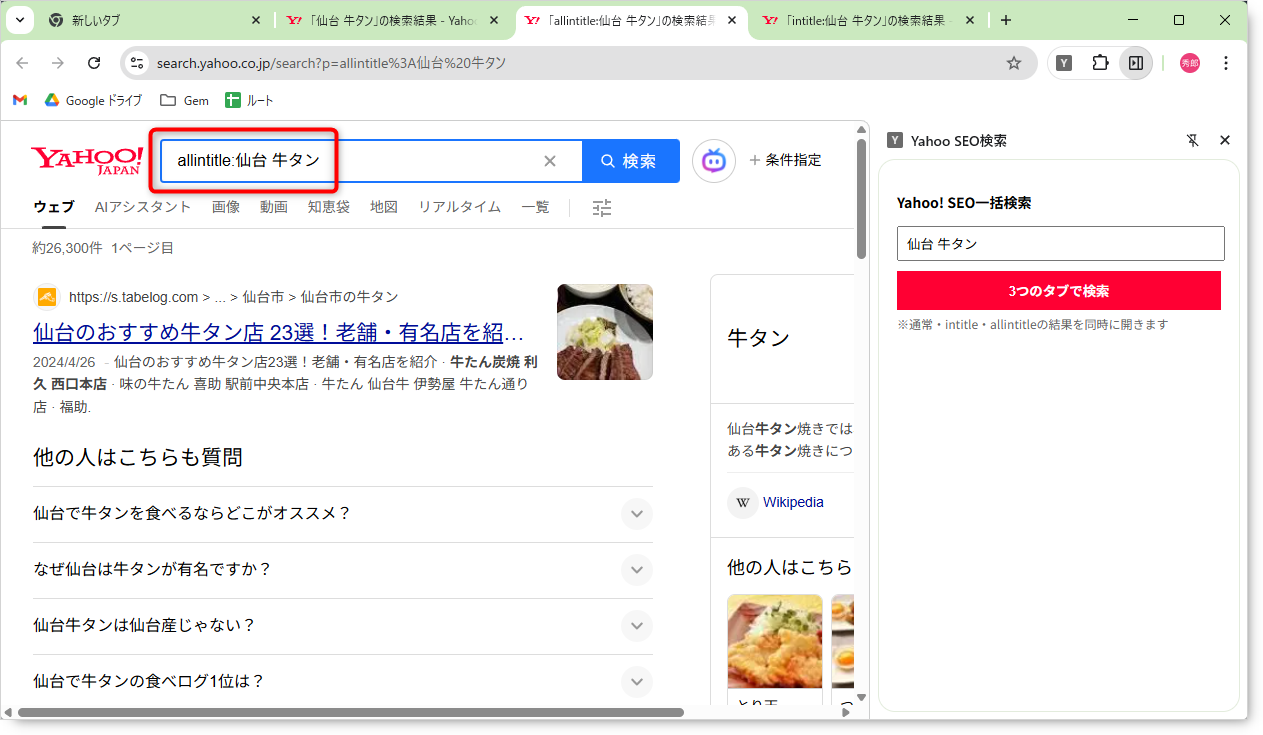 <p>※通常・intitle・allintitleの結果を同時に開きます</p>